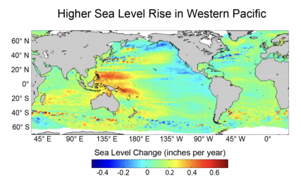 But what about the sea level change far from the coast line. That’s where NASA shows the acceleration is taking place. Just look at the area north of Australia!