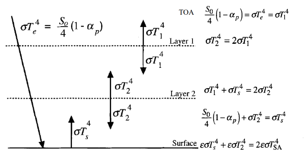 σTs^4 – σTsa^4 = σTe^4 / 2