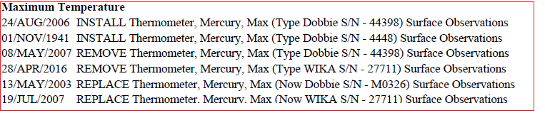 Hi Nick, We can only really know if it was hotter because of the weather, or the equipment change, after the parallel data is made public. I would have thought by now the Bureau would be itching to release it to embarrass me, and prove you and Bill correct. :-). Not to mention the Bureau’s Director Andrew Johnson who has also been most insistent that I’m a ninny, that I don’t understand how their purpose-designed probes work. :-).