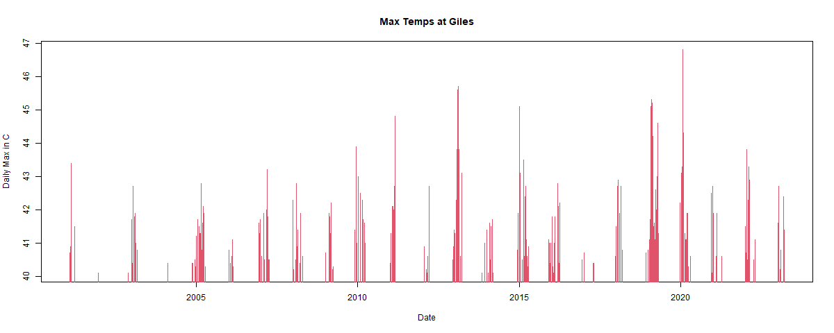 By my count, from your figures above, there are 163 days over 40C for the 10 years prior to 2011 and 280 days over 40C for the 10 years from 2011 to 2020.