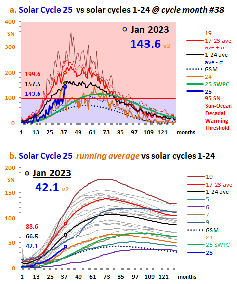 I can only add that the polar jets with huge frosts and blizzards occurred in the northern hemisphere this winter in the US, Canada, UK and Russia and the summer snow and frosts in Australia in December 2022 are only the first warnings of more cold snaps to come after the Sun passes the maximum of cycle 25 in which it is now.