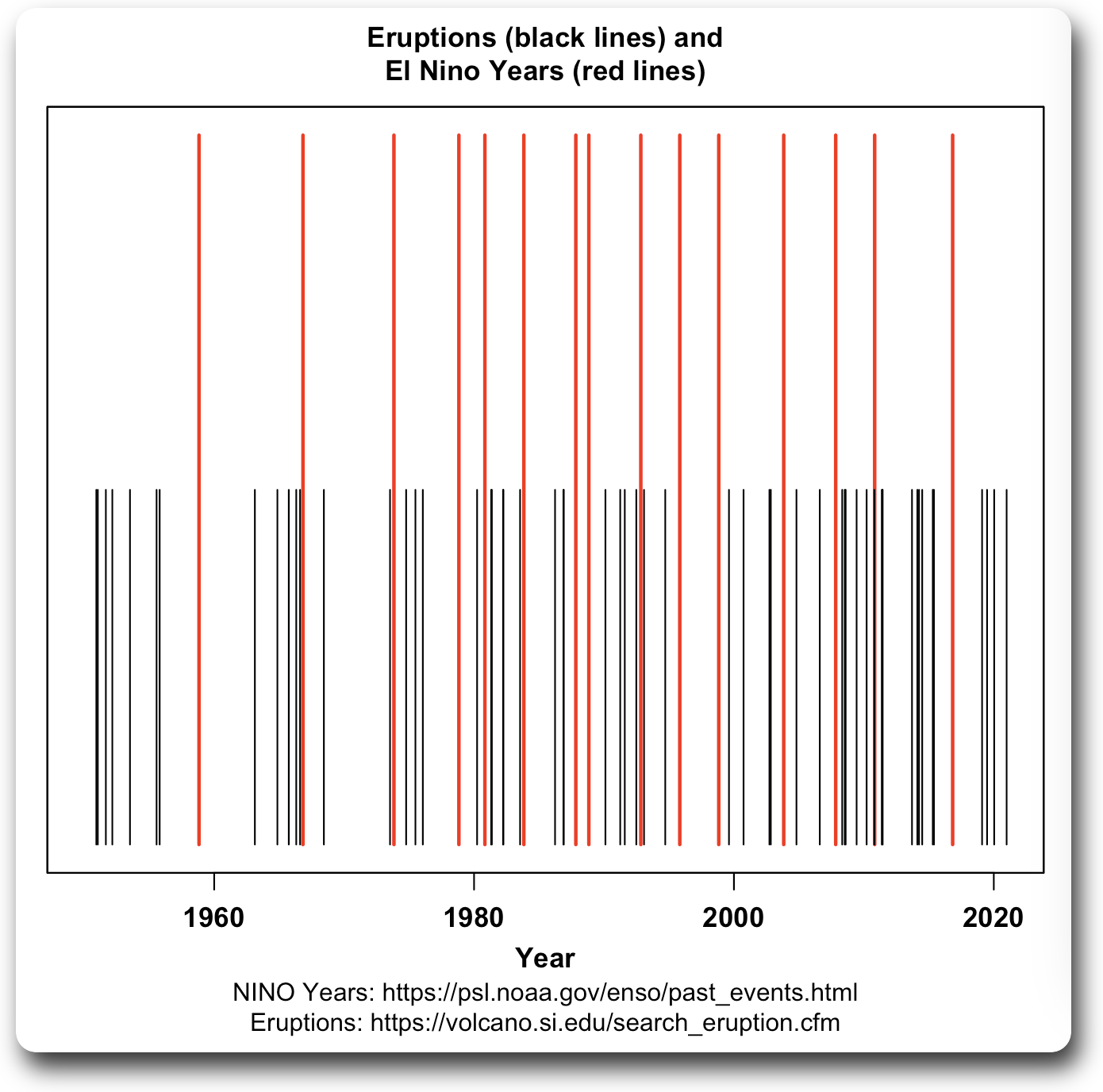 Despite that, I did my best to replicate it. Here are the dates of the eruptions and the El Nino years.