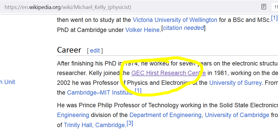 Because at exactly the same time he went to Wembley, I joined GEC Research’s twin operation, viz: The Marconi Research Centre at ‘Grate Badder‘