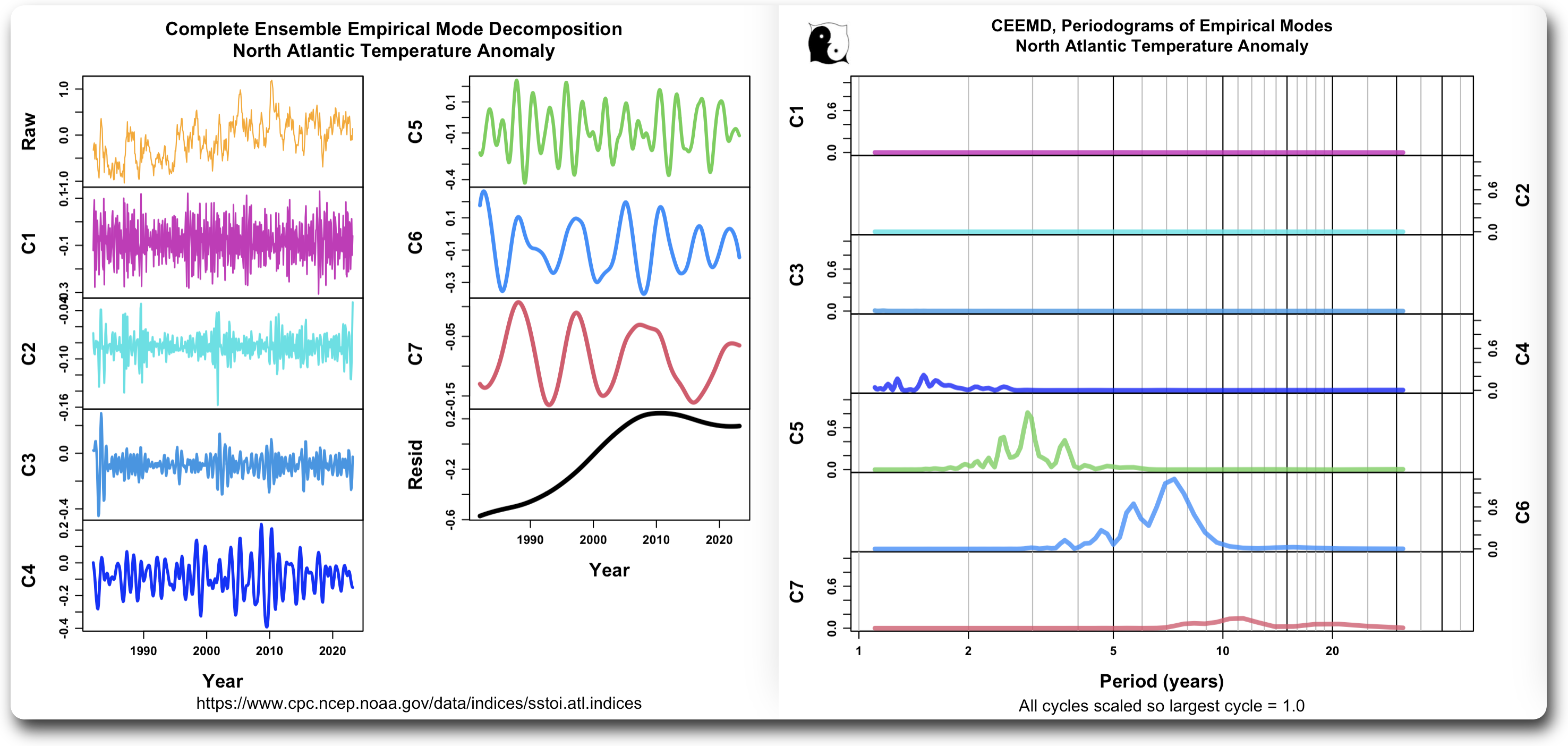 You mention a data break at the time of WWII. Recall that Climategate had many mentions of a desire to get rid of some observations taken during WWII. I do not think it so in this case, but the question could be raised if your CEEMD analysis gave different results for altered versus unaltered observations.