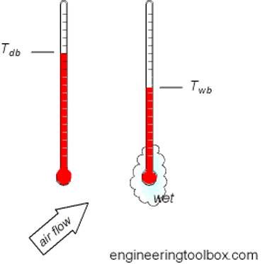 ” . . . the temperature of a wet bulb is always lower than the dry bulb due to evaporative cooling.”