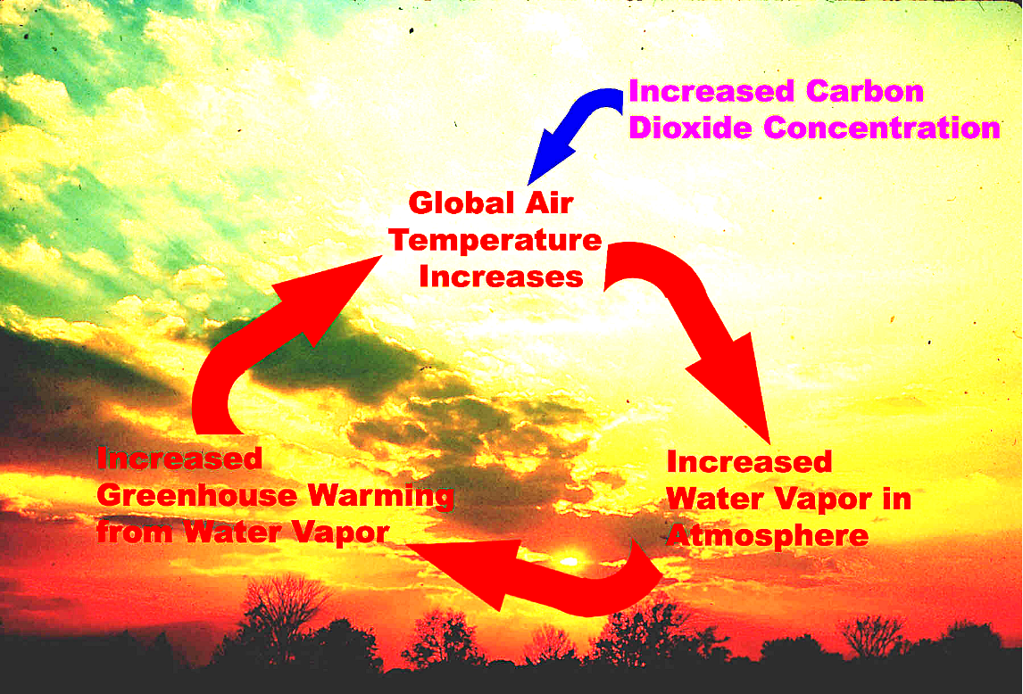 Increasing water vapor is a greenhouse gas that amplifies that temperature increase by 1.7 times.