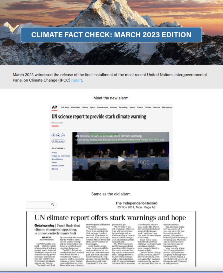 Ten pieces of climate propaganda from March 2023 exposed and debunked. The full PDF version (needed to click through to the links) is here.