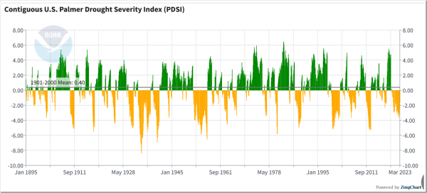 And NOAA’s data is quite explicit. Droughts are now much less severe than they were in the past.
