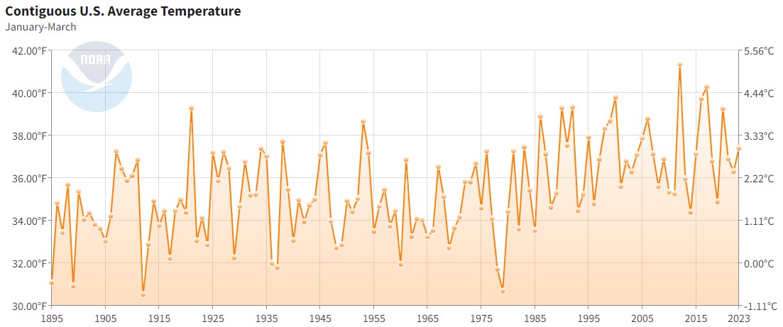 Graphic #1: Where is the warming Apr thru June? 1895 Temp 16.11 C Today 16.11 C. How can the entire Contiguous US show no warming for 128 Years? Link