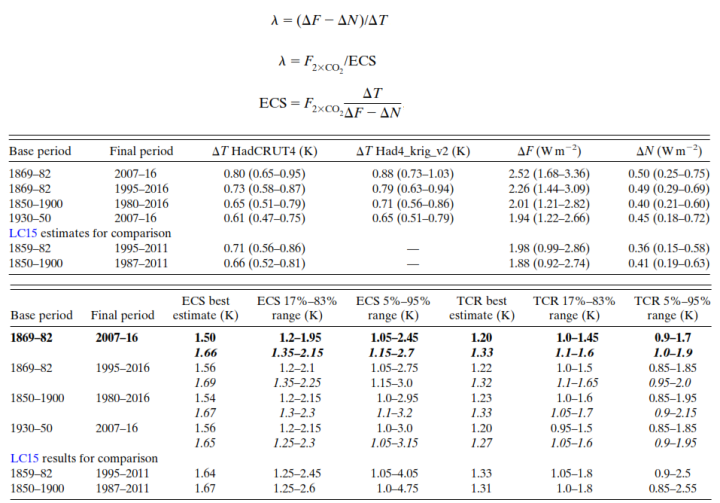 In part one we discussed various estimates of climate sensitivity (ECS, TCR, and observation-based values) and what they mean, especially those reported in the latest IPCC report, AR6. In part 2 we discussed the uncertainty in estimating cloud feedback to surface warming, and cloud feedback’s relationship with ECS. In part 3 we compared the various estimates to one another and discussed the differences between them. In this part we will discuss how Lewis and Curry convert their observation-based estimates of climate sensitivity to AR6-equivalent ECS values. Most conversions of observations to model based ECS are done in a similar way.