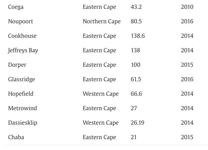 On the ground in electricity generation in South Africa, here’s what I can learn. The New York Times reports on March 14, 2023 that over the past decade plus, since the wind/solar fad took hold, the country’s coal power plants have been allowed to become “dilapidated” due to poor maintenance and disinvestment. Meanwhile, the focus going back as far as the turn of the century has moved to developing wind and solar resources to provide electricity. A December 2021 piece from the Alexandria Engineering Journal provides a comprehensive overview of the growth in renewables in South Africa. The initial demonstration wind project was constructed by Eskom in 2002. Here is the lengthy list of wind projects subsequently completed: