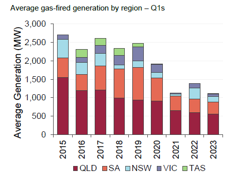 No gas stations were closed at the time. In fact, as you can see from the plot below, gas generation was boosted. Some years later the old Torrens station was closed. Here, from the latest AEMO report, is the history of gas generation in the AEMO. SA still has plenty of gas generation: