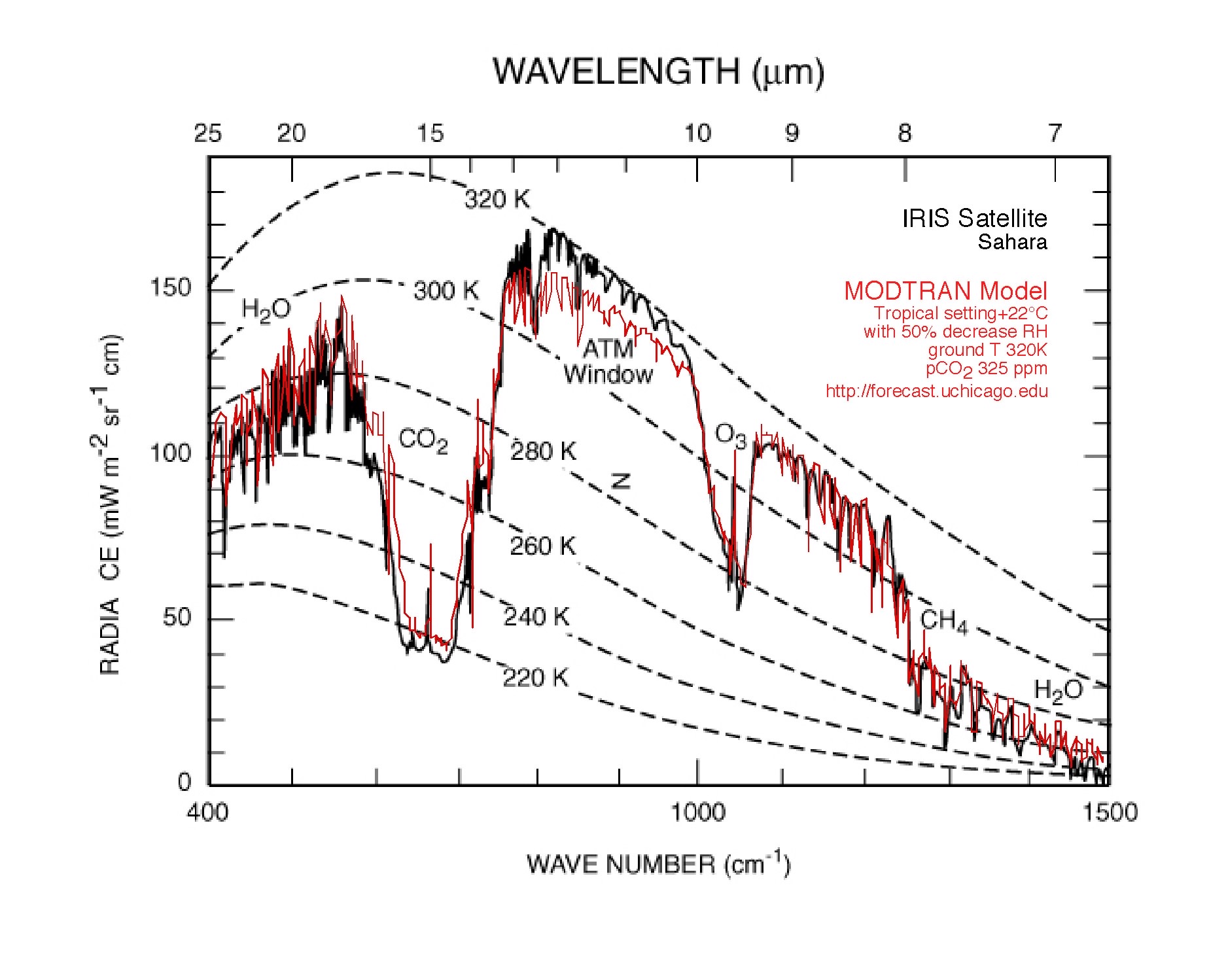 I don’t think the Sahara is a good place to take CO2 IR lessons from. Low water vapor. Hot sand during the day, cold sand at night. Local albedo similar to the Moon. Temp inversions the norm at night. Convection high during the day. Same CO2 as everywhere else, lost in big variations in radiation by Planck’s law.