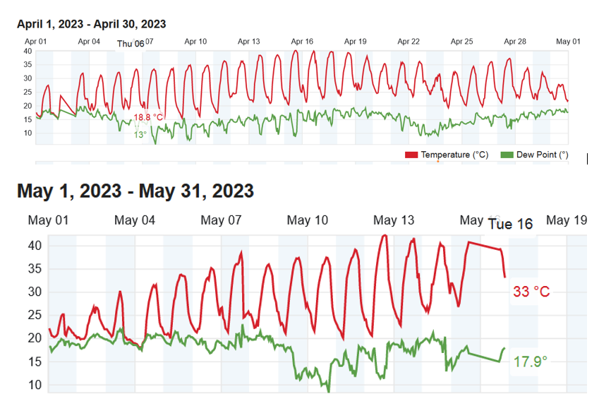 If you go back a whole year, (and check other stations) all thro that period end-Apr thro early-May, temps run at about 30°C average