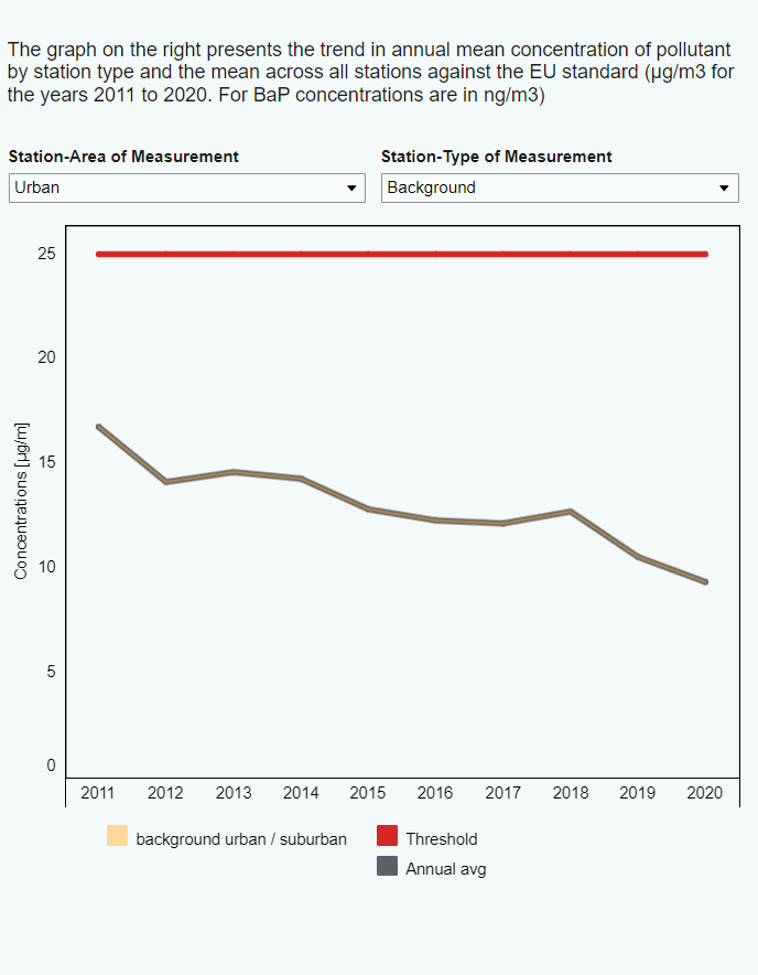 The EU standard is 25µg/m3, in 2020 Germany’s urban average was 9.36µg/m3.