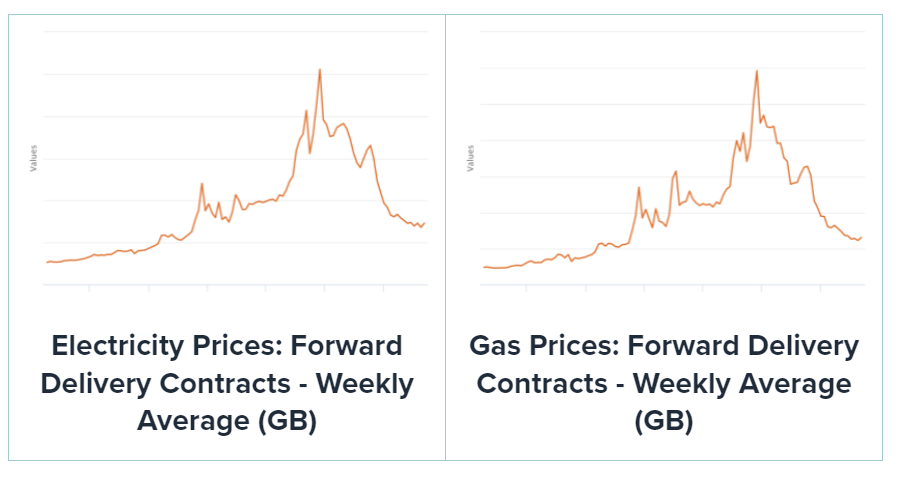 Here is the cost of gas, primary FF used in UK for electricity generation. About 2.5 times what it was before the war, and of course has been much higher: