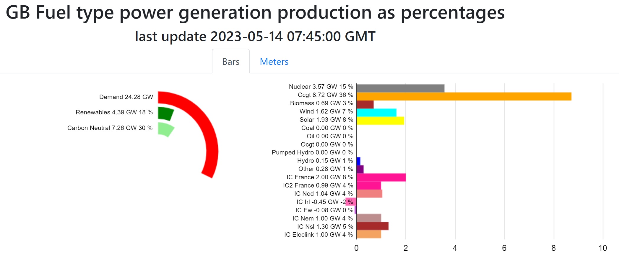 Renewables providing nearly 50% of the nations electricity (which is a small proportion of the country’s total energy needs) however, come 6pm tonight, someone switches the Sun off and the breeze will inevitably fall.