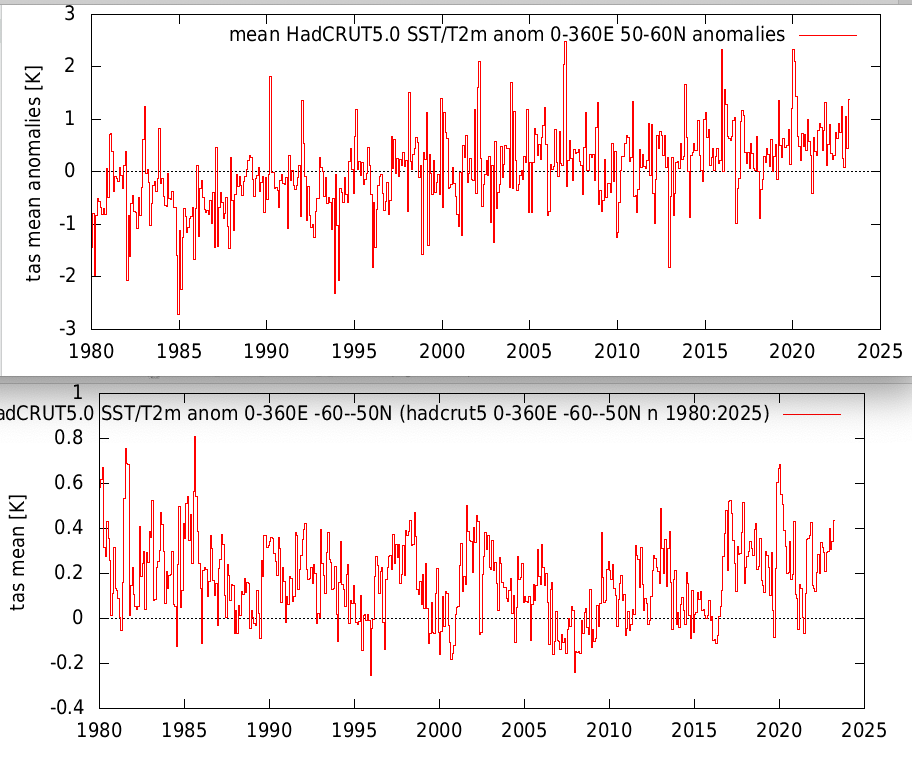 Let’s see how the local (UK, North-East Atlantic ocean region) “natural variability” compares to the “climate forcing” of atmospheric CO2 levels (see attached graph).