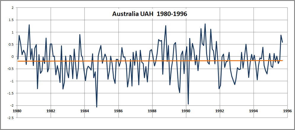 “one third of all the heat that UAH records for Australia has occurred during the period of ‘pause’ shown in your chart.”