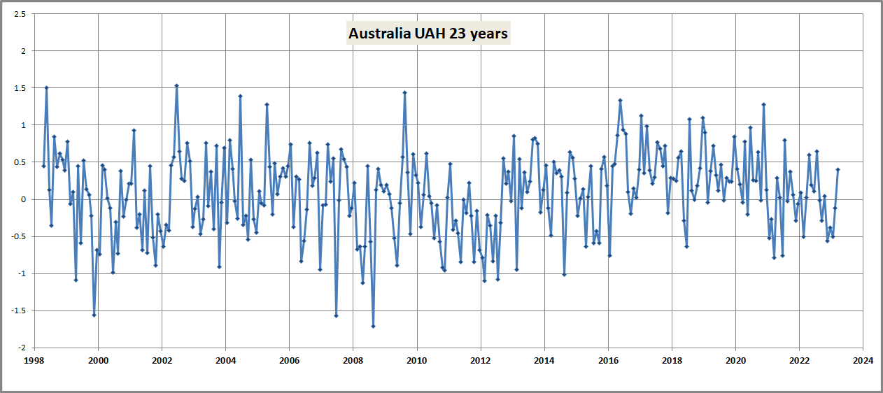 UAH Australia shows June 2023 as 16th warmest in 45 years,