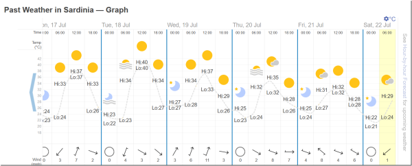 There are of course places further south in Sardinia which would naturally be much hotter, but there is no evidence that any of these were hotter this week than in the past. The BBC is particularly good at finding some obscure little village with a high temperature, without offering any historical perspective to compare it with.