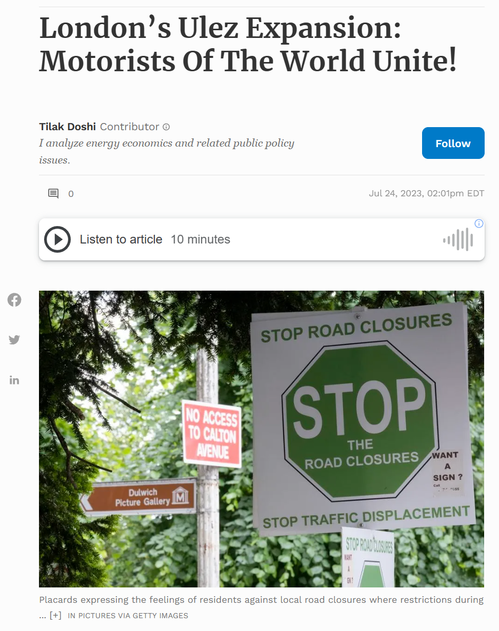 The ULEZ expansion is more than a local London issue. As Doshi aptly describes, it’s part of a global trend where
