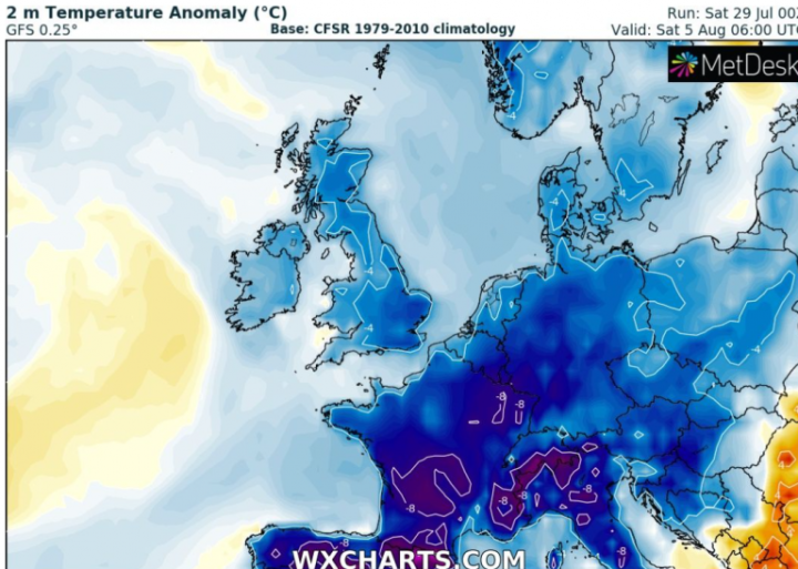 For North Germany, temperatures will struggle to even reach the 20°C mark. Many Germans will have no choice but to turn on the heat, even though it’s the peak of summer.