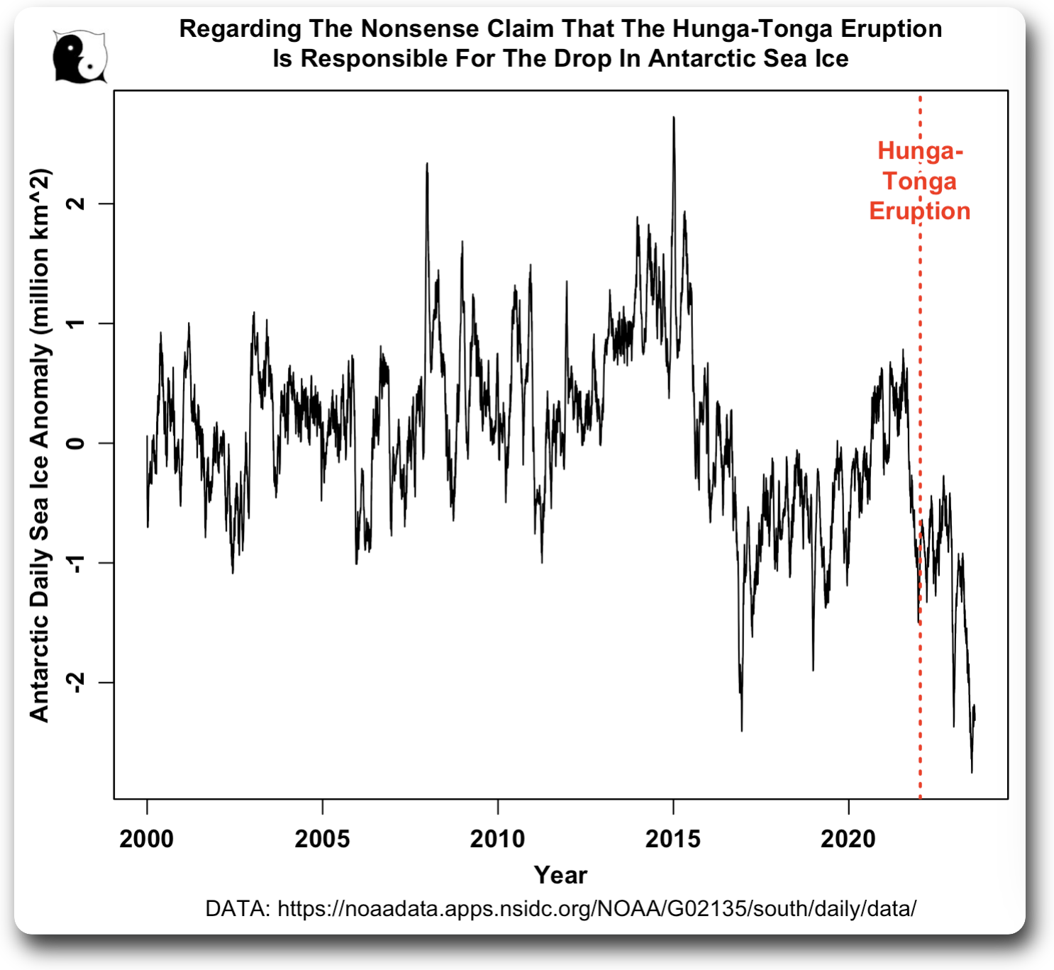 Finally, there are possible effects from the eruption itself. A tsunami was sent crashing into Antarctica at a time of relatively low sea ice. Could this have weakened the ice to the point where it will take some time to build up higher ice levels. Maybe that is why the ice has not expanded as much during the SH winter.
