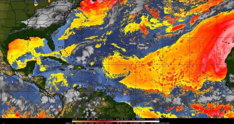Meteorologist Ross Hays writes on Facebook: This is a satellite picture with the colors showing dry air & Sahara Dust coming across the Tropical Atlantic. This has prohibited the development … Continue reading In one picture: Why we have a slow Atlantic hurricane season