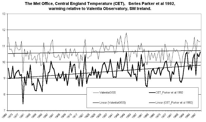 …. but comparisons with Valentia (basically untouched) gives a good indication of the urban warming effect on CET.