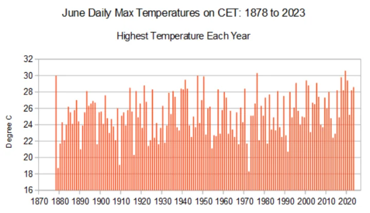 The Met Office made a big play of the fact that June 2023 was hotter than 1976, part of the well-known summer of 1976.