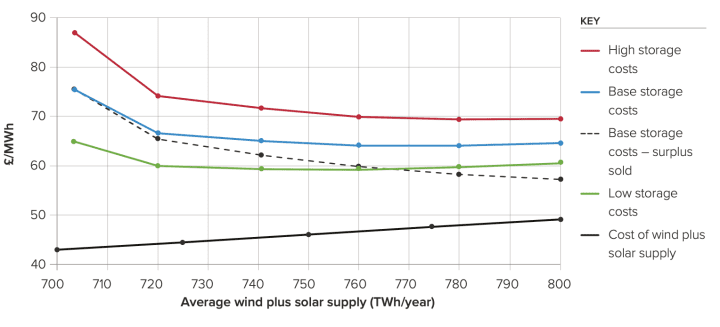 Wind supply can vary over time scales of decades and tens of TWhs of very long- duration storage will be needed. The scale is over 1000 times that currently provided by pumped hydro in the UK, and far more than could conceivably be provided by conventional batteries.