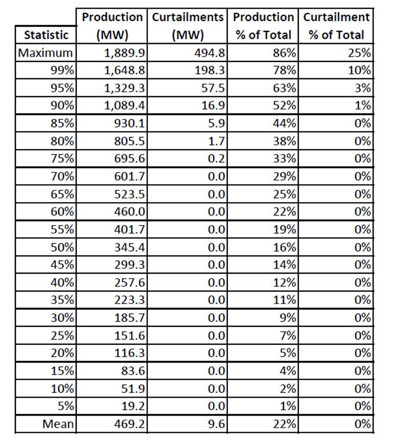 Table 1: NYISO 2021 Hourly Wind Production at the Aggregated NYCA-Wide Level