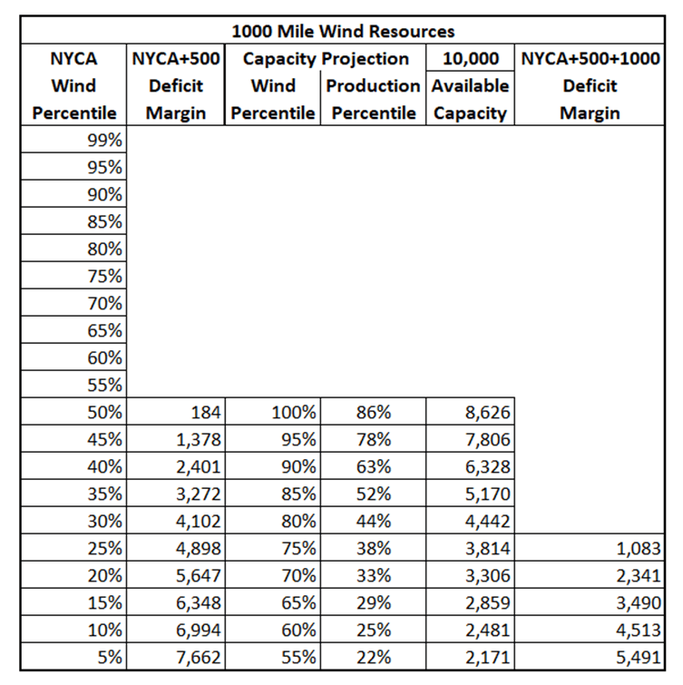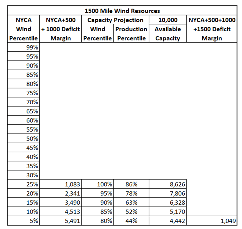 The 1000-mile resource availabilities s cover the NYCA deficit down to 25th NYCA percentile and the 1000-mile 75th percentile so we must go out another 500 miles to assure replacement of the existing fossil generation.