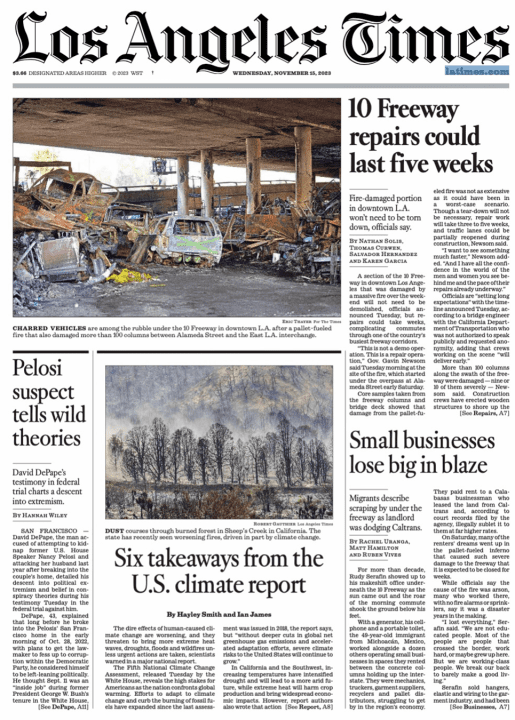 The climate alarmist L A Times published this government propaganda “science” update report on page 1 as shown below.