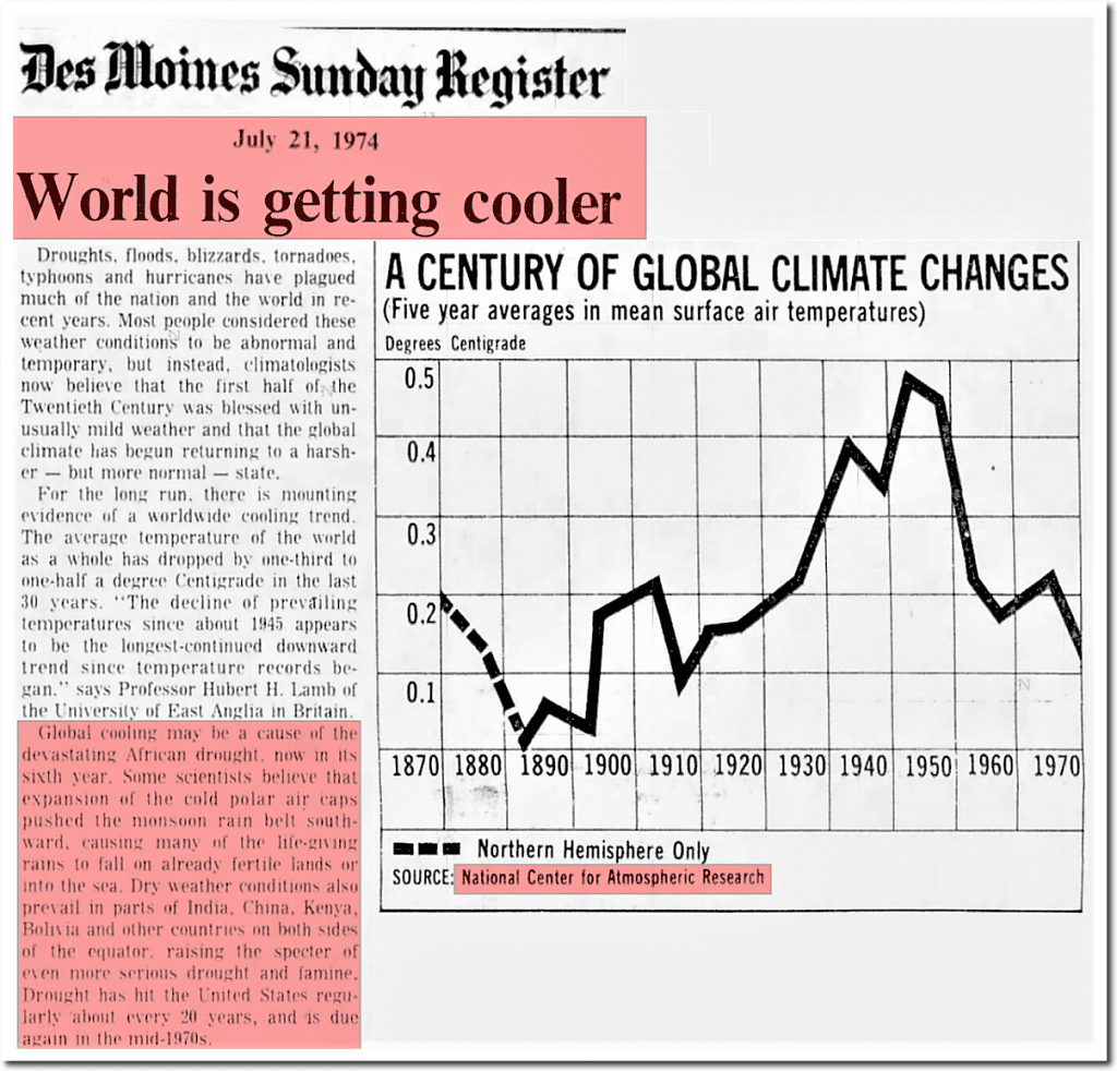 So if the 1880’s and the 1930’s and the present day are all equal in warmth, then that shows that CO2 is not what is controlling Earth’s temperatures, and that’s what Phil Jones and the other temperature data bastardizers didn’t want us to know, so they artificially cooled the past using bogus sea surface temperatures to form the bogus, bastardized Hockey Stick charts that are the basis for all the alarmism over CO2