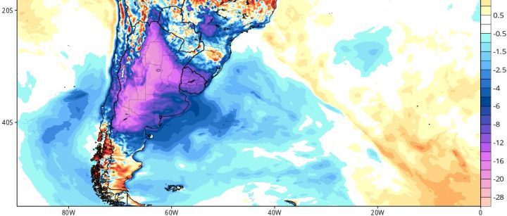 The cold was severe, up to 24 degrees Celsius below normal, and it was also widespread, affecting most of Argentina: