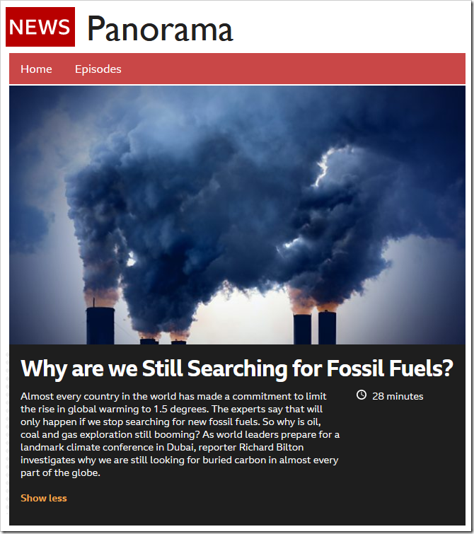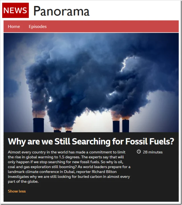 BBC: Why We Are Still Searching for Fossil Fuels?What answer did the BBC come up with? Or did they not really want an answer?