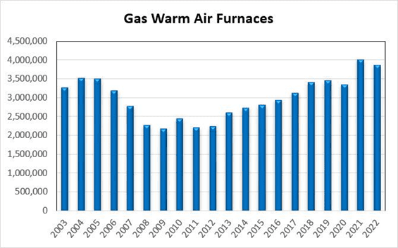 The AHRI data clearly shows that gas appliances are losing at least some ground to electric equivalents as evidenced by the above graphs. Moreover, this trend appears to have accelerated under the Biden Administration. AHRI’s discussion of the IRA and DPA is non-committal advocacy (an oxymoron?).
