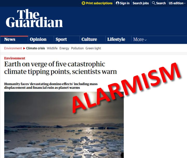 For example, The Guardian blares the headline: Earth on verge of five catastrophic climate tipping points, scientists warn, while Politico writes Catastrophic climate ‘tipping points’ may be imminent.
