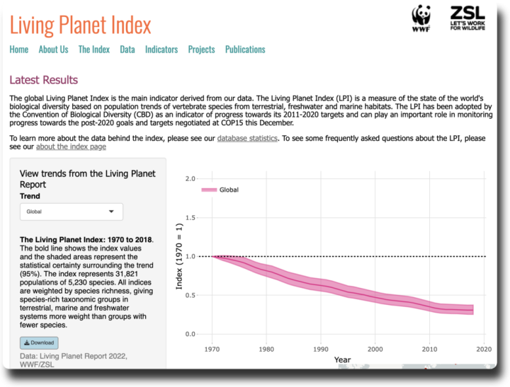Even National Geographic is a bit skeptical about the LPI, the article at https://www.nationalgeographic.com/science/article/living-planet-index-world-lose-two-thirds-animals-2020-conservation-science is worth a read.