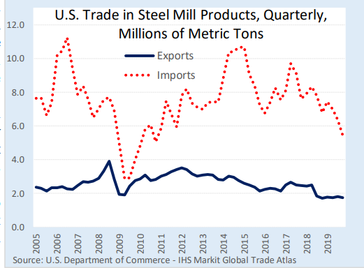 The amount of imported steel has gone up because US Steel is getting too expensive to make so they are offshoring their emissions.
