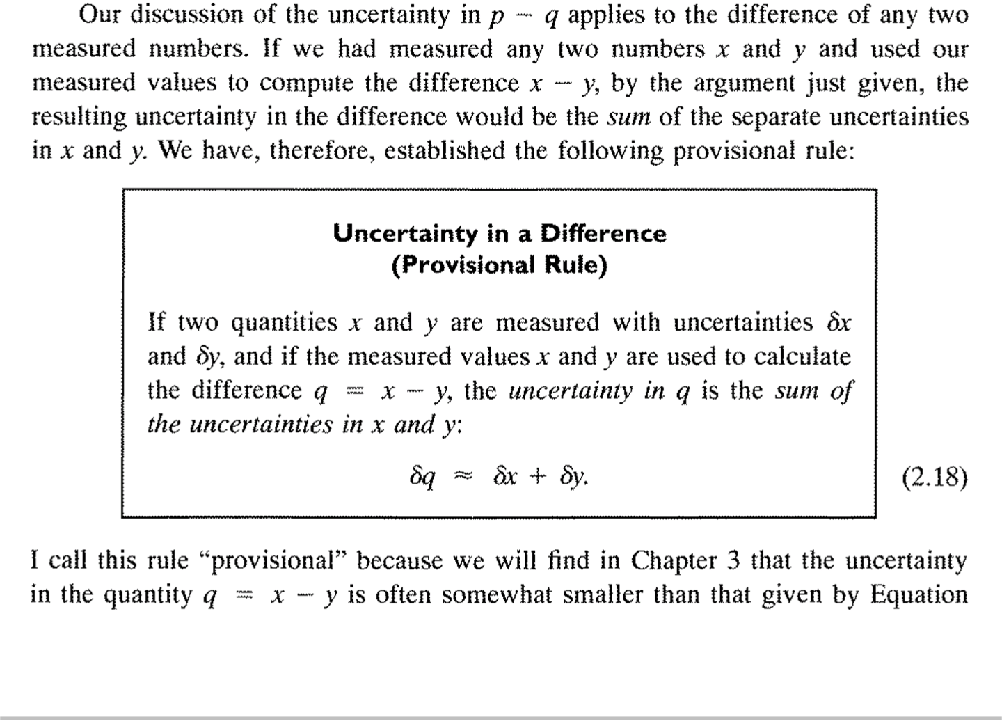 That’s the provisional rule – the worst case scenario. Read on and you get the actual rule for random independent uncertainties