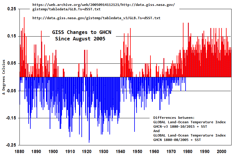 Even the GISTEMP values used by the IPCC show too much warming, by artificially lowering the temperature anomaly values of the past.