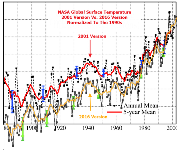 and here’s how NOAA treated the years after 1998, one “hottest year evah!, after another. It’s Alarmist Climate Change Fraud.: