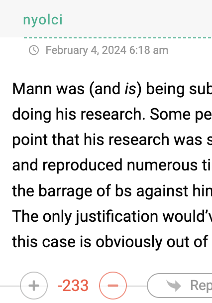 My reply above (https://wattsupwiththat.com/2024/02/08/jury-finds-in-favor-of-michael-mann-in-defamation-lawsuit-against-mark-steyn-rand-simberg/#comment-3863956) covers much I how I would respond to your comment.