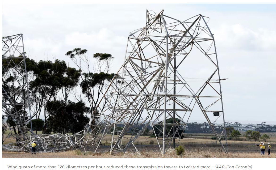The reported pylons were near Geelong. That had an 80Kmh gust. So I agree there seems to be an engineering problem. Chinese steel?