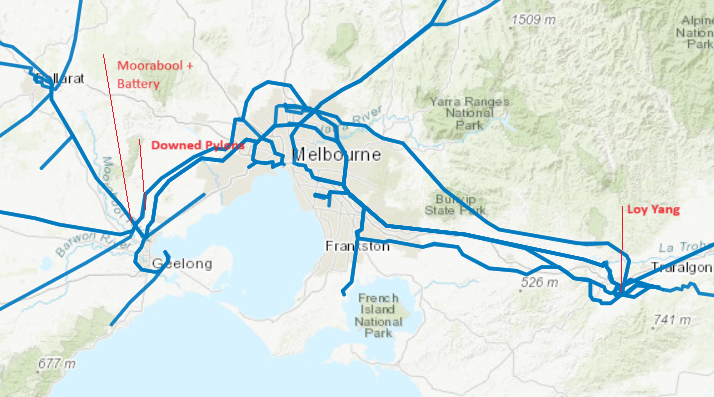 It was loss of transmission that caused instability in the grid, which then caused Loy Yang to trip (all 4 units). It wasn’t, as some have said, the fact that Loy Yang power had nowhere to go. What AEMO said was that the 500 kV line to go was the Moorabool to Sydenham line. That is on the west side of Melbourne, and does not carry power from the Latrobe Valley to Melbourne.
