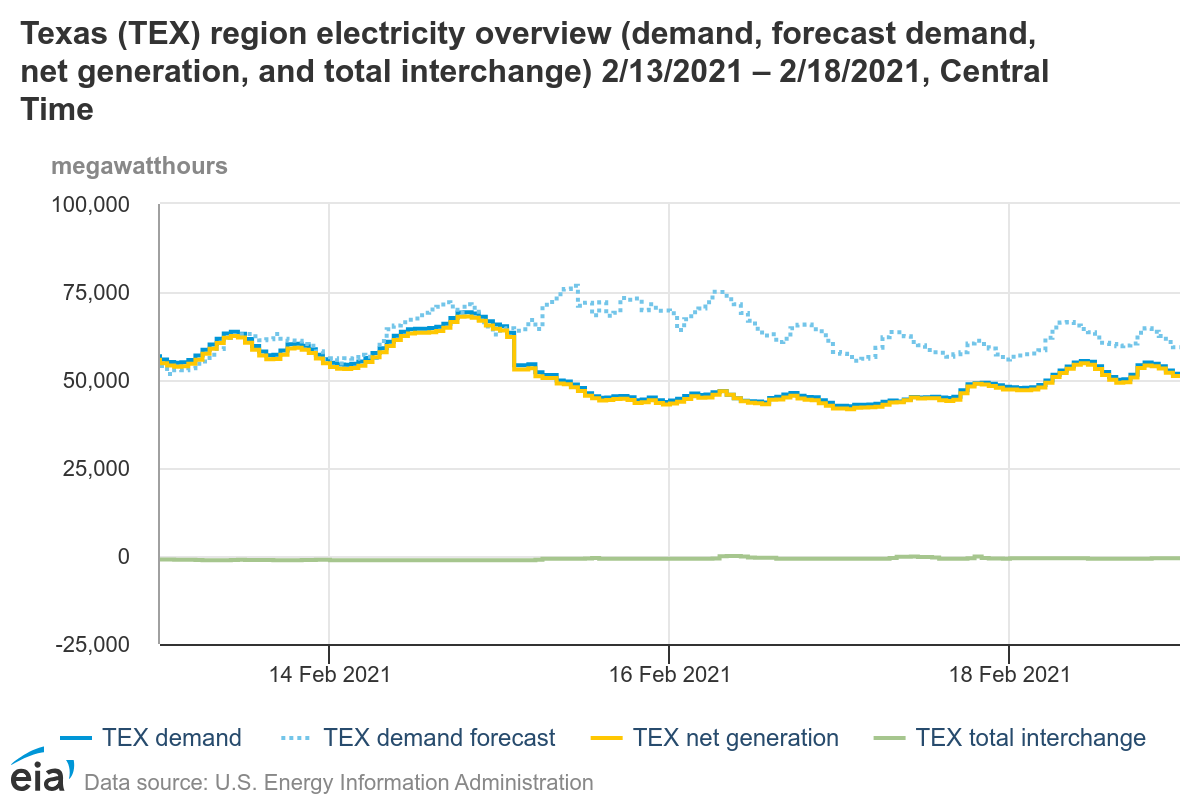 I don’t think that’s right. Here’s the demand forecast vs generation and demand outturn. The problem was that they had sanctioned maintenance – not expecting a winter freeze – leaving them very short of capacity. There are higher generation records from summer heat waves.