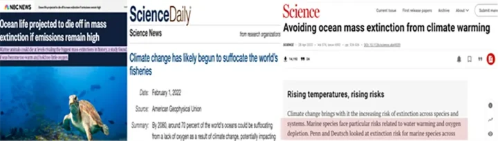 All humans and animals require oxygen to live. So, to evoke public fear, headlines often claimed global warming will cause ocean life to suffocate. They evoke the true but misleading factoid that warmer water holds less oxygen. Thus, rising CO2 will cause the ocean to hold less oxygen leading to suffocation. Dishonestly, they ignore more important dynamics controlling oxygen.